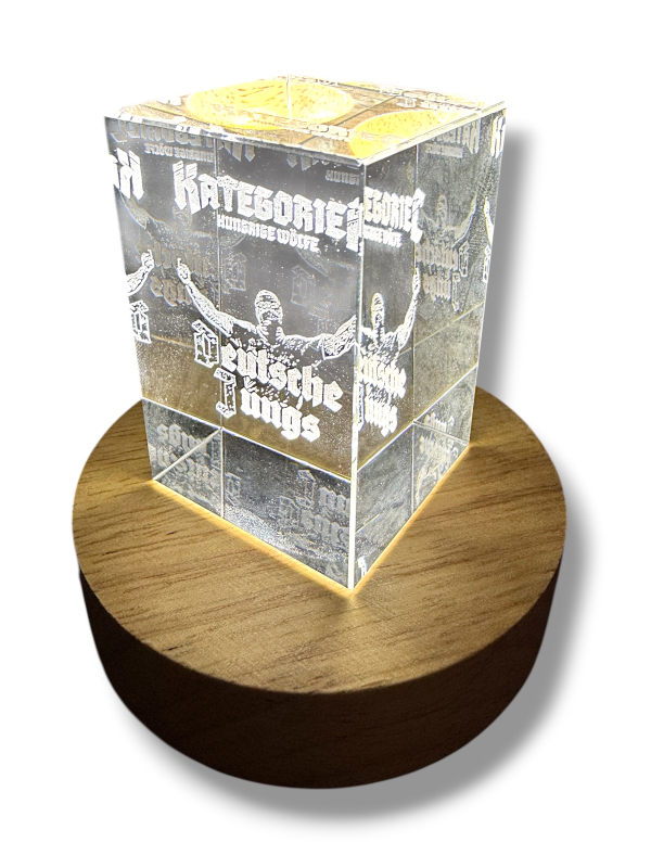 Glasblock Kategorie C Deutsche Jungs LasergraviertSichert euch diesen hochwertigen und exklusiven Glasblock inklusive Beleuchtungssockel.