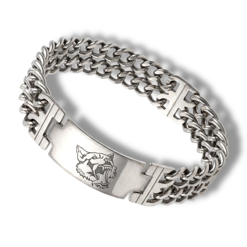 Edelstahl-Armband mit Wolfskopf Lasergravur